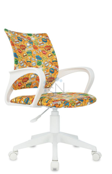 товары для офиса и школы Кресло компьютерное детское BUROKIDS 1 W-BANG, ткань оранжевая бэнг, пластик белый