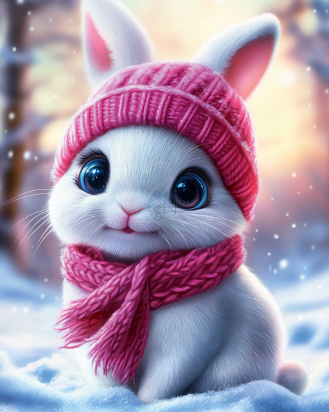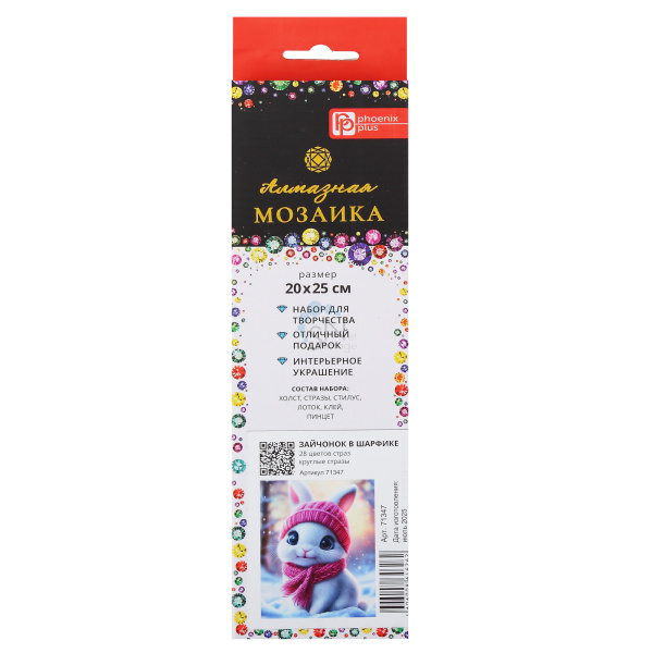Мозаика алмазная 20*25см Феникс Зайчонок в шарфике полная выкладка холст без подрамника 71347